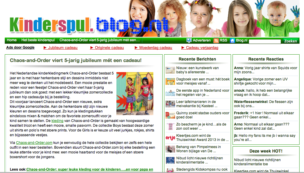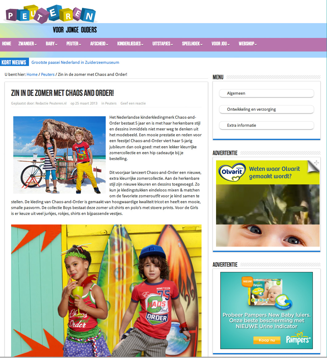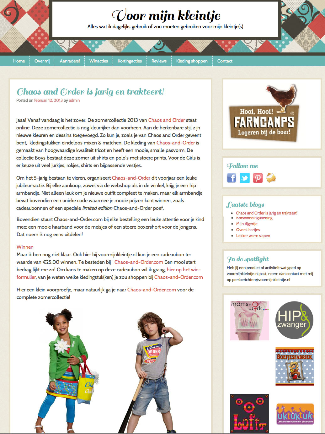 Via Chaos-and-Order.com kun je eenvoudig de hele collectie bekijken en zelfs een hele outfit in een keer bestellen. Bovendien stuurt Chaos-and-Order.com bij elke bestelling een leuke attentie voor je kind mee: een mooie haarband voor de meisjes of een stoere boxershort voor de jongens.