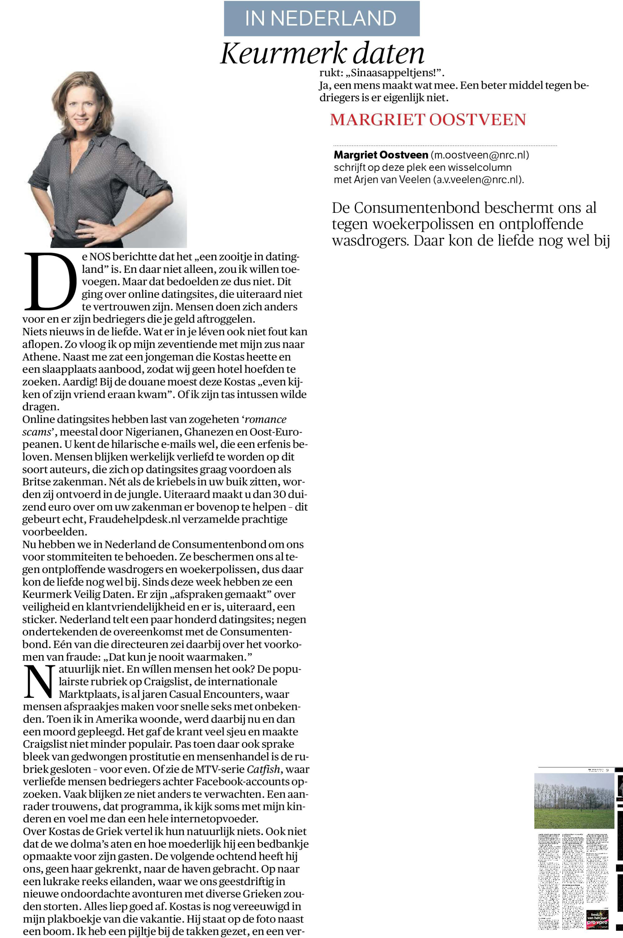 Op initiatief van de Consumentenbond lanceren de negen grootste datingsites van Nederland deze week het nieuwe Keurmerk Veilig Daten. Dankzij deze certificering en het keurmerk Veilig Daten kunnen datingbureaus voortaan duidelijk aantonen dat singles via hun websites veilig en betrouwbaar kunnen daten.